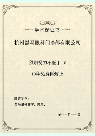 *手术后视力以新一期检查为准;此项承诺将明确写入《手术保证书》。